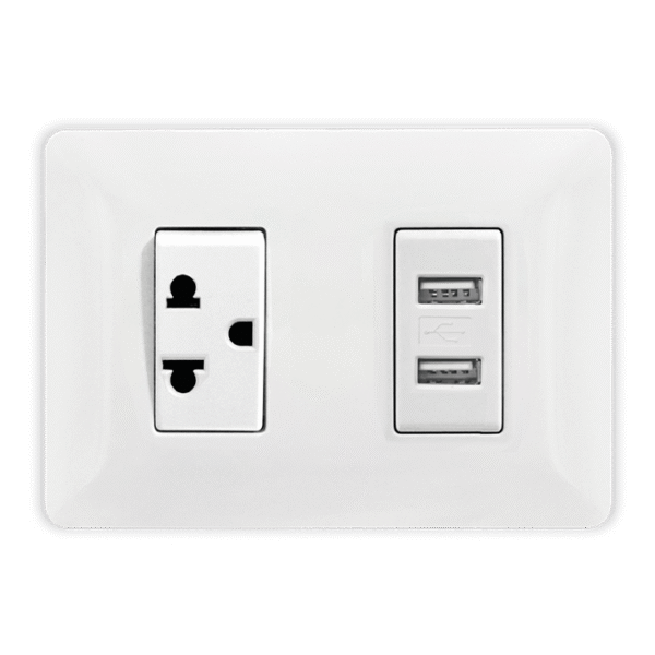 TOMACORRIENTE DOBLE CON TIERRA MÁS TOMA DOBLE USB EMPOTRAR – PLATINIUM